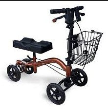 The Knee Walker is designed to assist individuals recovering from lower leg injuries or surgeries, allowing them to remain mobile without bearing weight on the affected leg. It features a sturdy, lightweight frame, an ergonomic cushioned knee pad, and adjustable handlebars with reliable handbrakes for comfort and stability.